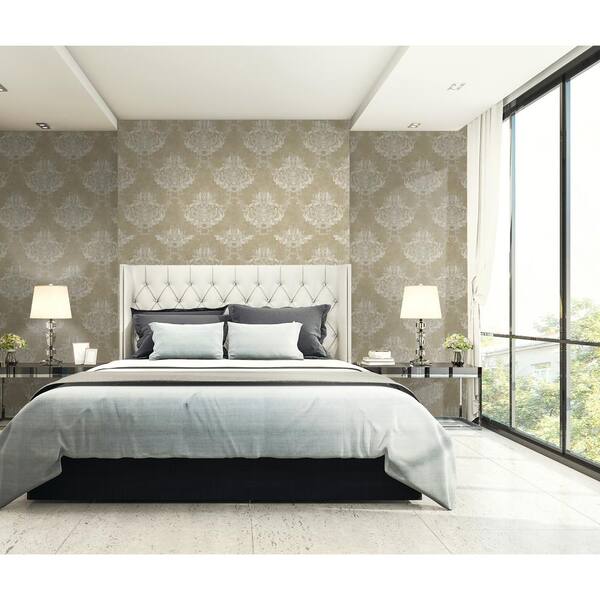 Cream Classic Damask Paper Strippable Wallpaper Roll (Cover 57 sq. ft.)