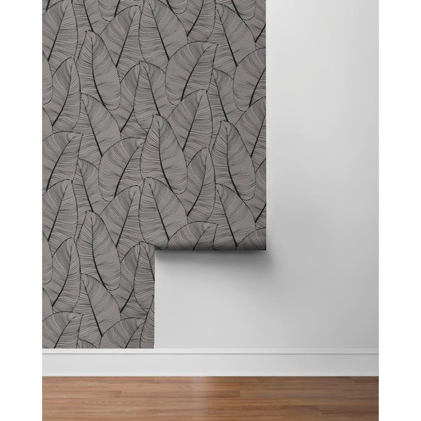 Modern Metallic Leaf Silver and Black Vinyl Peel and Stick Strippable Wallpaper Roll (Cover 30.75 sq. ft. )