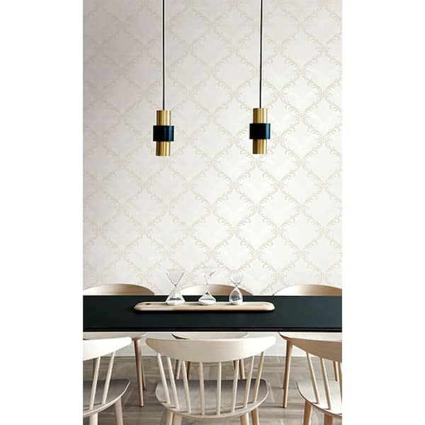 Ornament Striped Damask Beige Paper Strippable Wallpaper Roll ( Cover 56.05 sq. ft. )