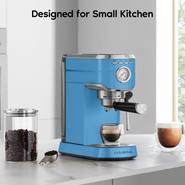 2 Cups Light Blue Stainless Steel 20 Bar Espresso Machine with Powerful Steam Wand