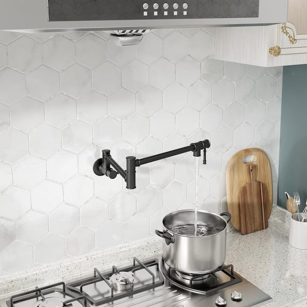 1.8 GPM Wall Mounted Foldable Kitchen Pot Filler with Double Handle in Matte Black