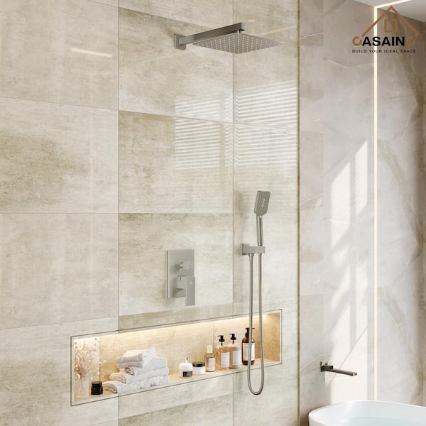 1-Handle 3-Spray Pattern 12 in Wall Mount Shower Head, Tub and Shower Faucet, Brushed Nickel (Valve Included)