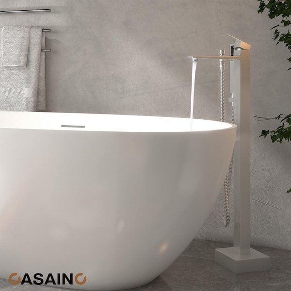 1-Handle Floor Mount Freestanding Tub Faucet with Square Handheld Shower in Brushed Nickel