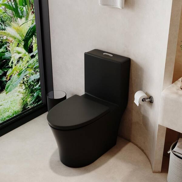 1-Piece 1.1/1.6 GPF Dual Flush Elongated Toilet in Black Soft Closing Seat Included