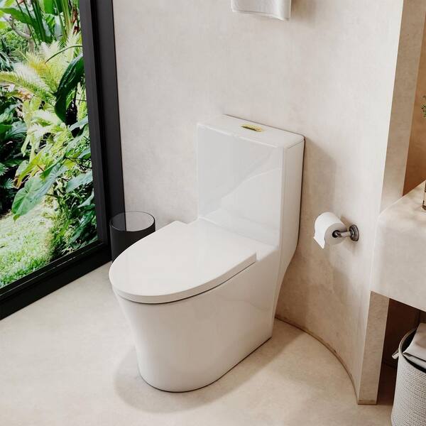 1-Piece 1.1/1.6 GPF Dual Flush Elongated Toilet in White Soft Closing Seat Included