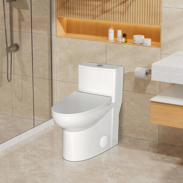 1-Piece 1.6/1.1 GPF Dual Flush Elongated Toilet in White with Soft Closing Seat