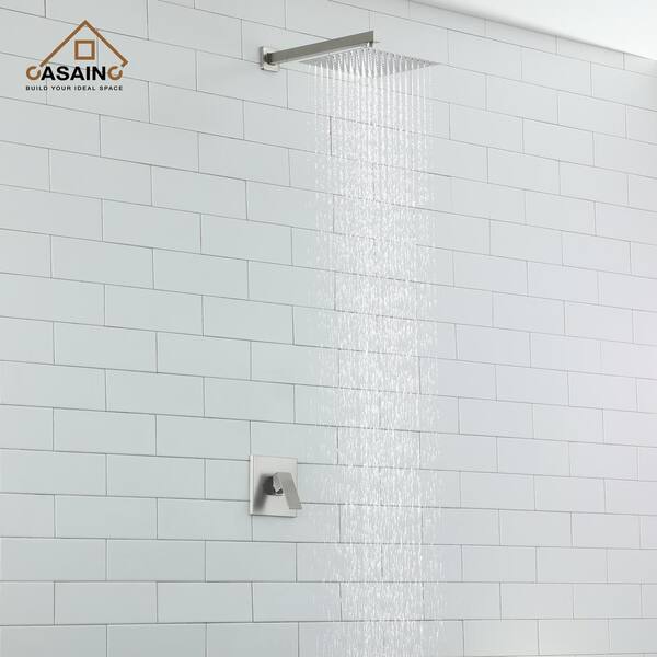 1-Spray Patterns with 2.5 GPM 10 in. Wall Mount Rain Fixed Shower Head in Brushed Nickel