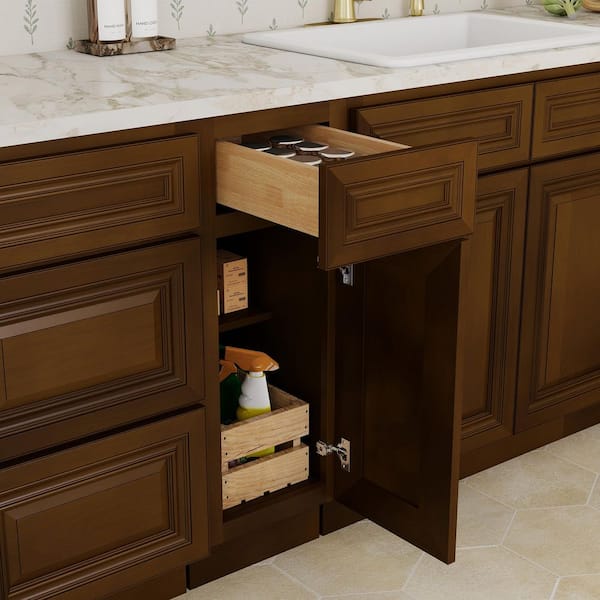 12 in. W x 24 in. D x 34.5 in. H Plywood Ready to Assemble Floor Base Kitchen Cabinet in Dark Caramel with Drawer