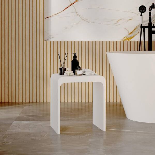 15.35 in W Freestanding Thicken Shower Seat, Solid Surface Stool in Matte White