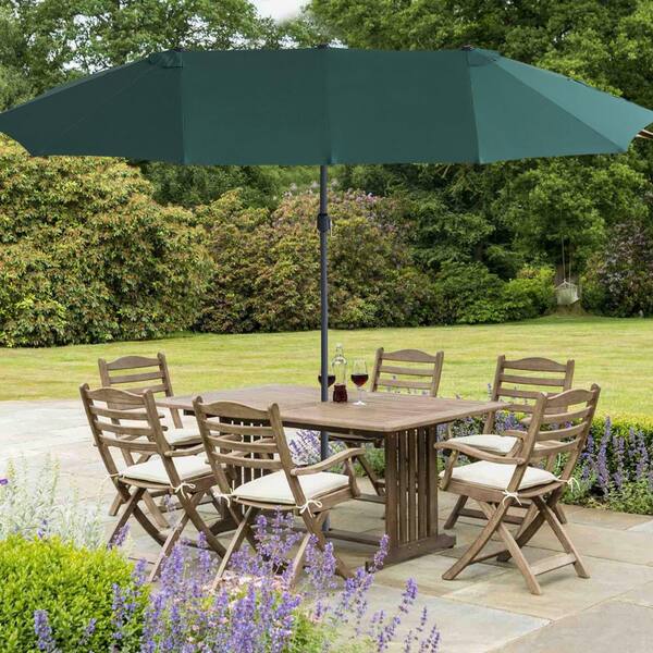 15 ft. Black Steel Market Rectangular Patio Umbrella in Green