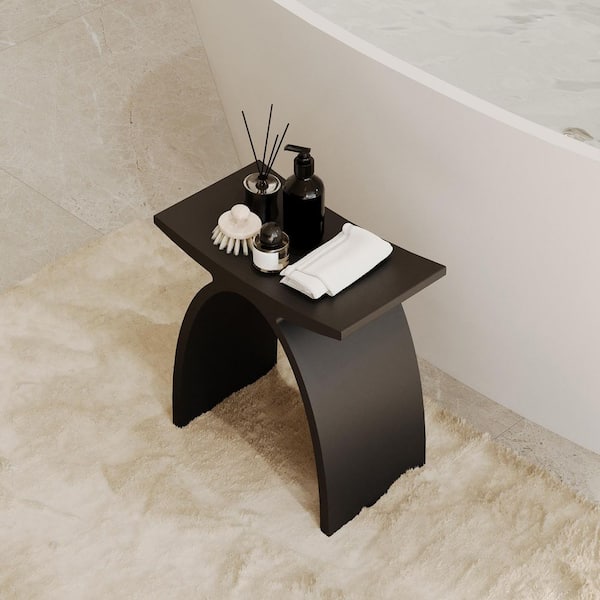 16.5 in W Freestanding Curved Shower Seat, Solid Surface Stool in Matte Black