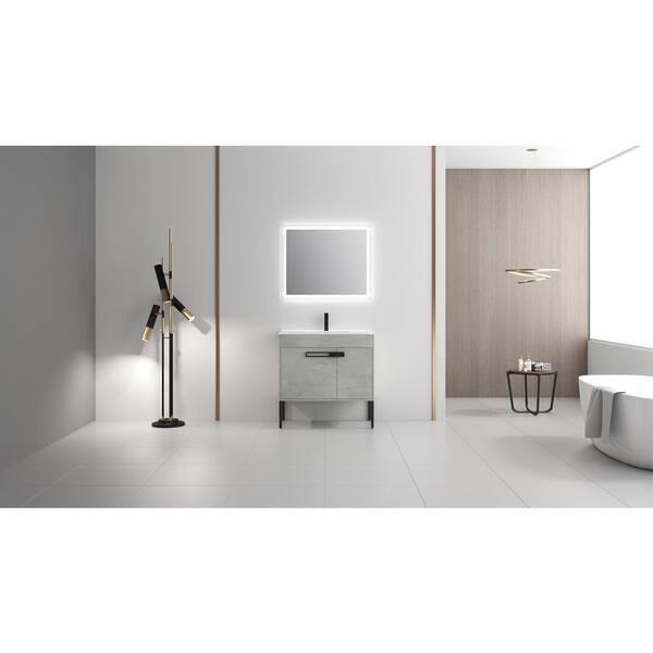 18 in. W x 36 in. D x 35 in. H Freestanding Bath Vanity in Cement Gray with White Top with Soft Close Doors