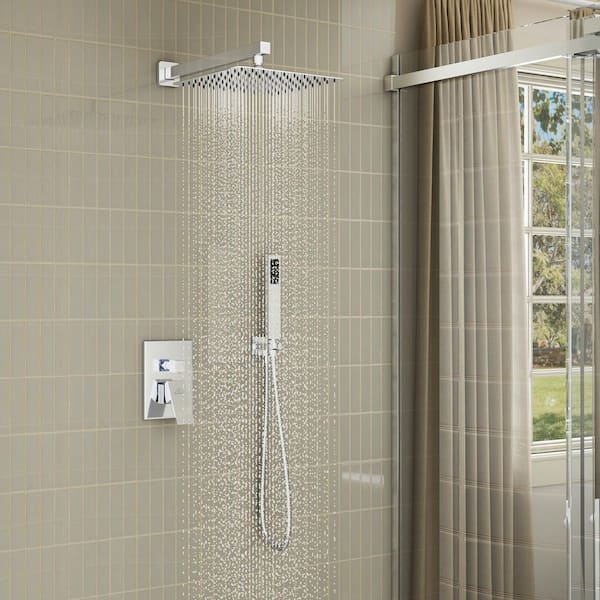 2-Spray 10 in. Square Wall Mount Dual Shower Heads with Hand Shower Faucet 2.5 GPM in Chrome (Valve Included)