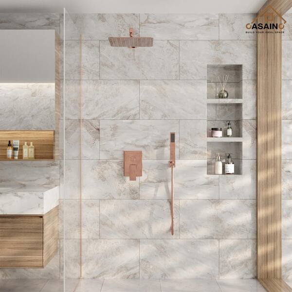 2-Spray 10 in. Wall Mount Dual Shower Heads and Handheld Shower Head with 1.8 GPM in Rose Gold