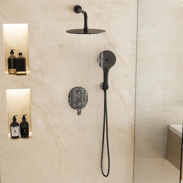 2-Spray Patterns 10 in. Wall Mount Handheld Shower Head 1.8 GPM in Matte Black