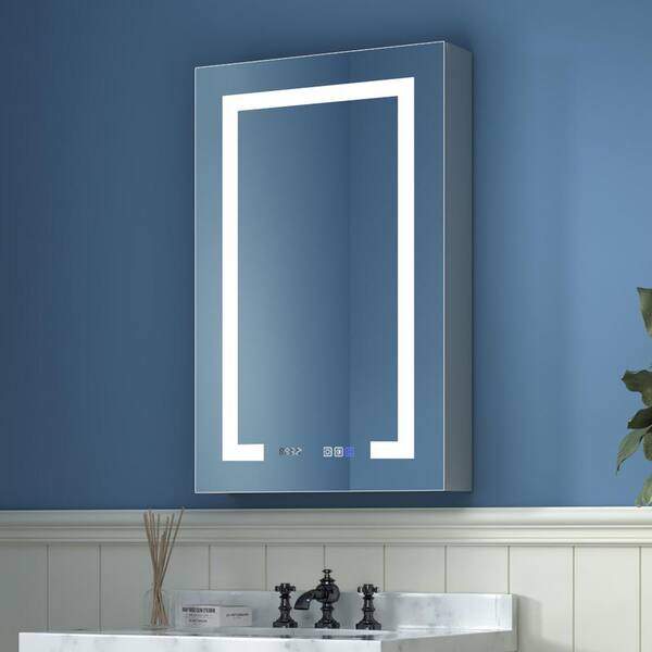 20 in. W x 32 in. H Rectangular Sensor Light Medicine Cabinet with Mirror Tempered Glass, Adjustable Shelves and Clock