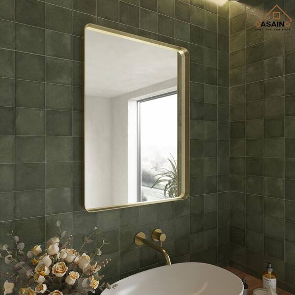 22 in. W x 30 in. H Rectangular Framed Wall-Mounted Bathroom Vanity Mirror in Tempered Glass
