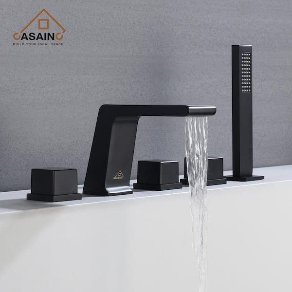 3-Handle Tub-Mount Roman Tub Faucet with Hand Shower in Matte Black