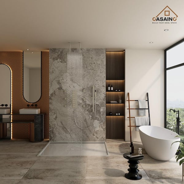 3-Spray 16 in. Ceiling Mount Dual Shower Heads and Handheld Shower Head with 2.5 GPM 6-Jet in Brushed Nickel