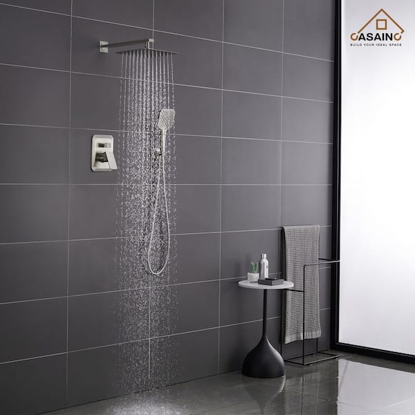 3-Spray Patterns 9.8 in. Wall Mount Dual Shower Heads in Spot Resist Brushed Nickel