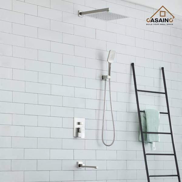 3-Spray Patterns with 2.5 GPM 12 in. Wall Mount Dual Shower Heads with Spot Resist in Brushed Nickel