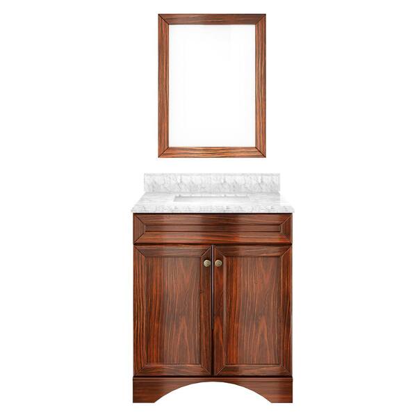 30 in. W x 22 in. D x 35.4 in. H Single Sink Freestanding Bath Vanity in Traditional Brown with Marble Top and Mirror