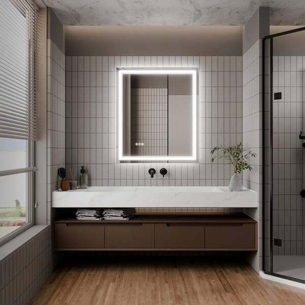 30 in. W x 36 in. H Rectangular Frameless LED Light Dimmable Anti-Fog Wall Bathroom Vanity Mirror
