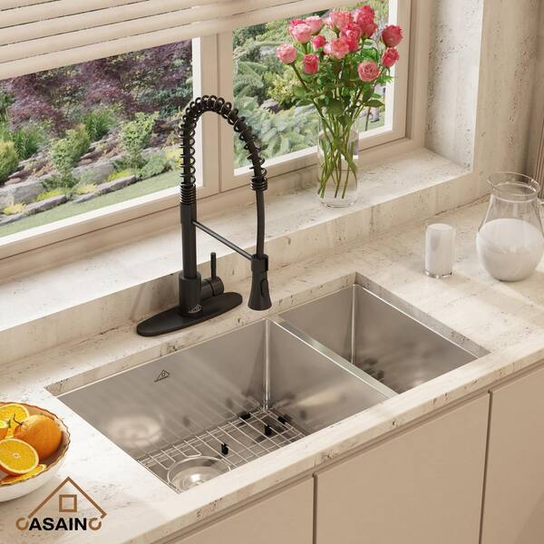 32 in. Undermount Double Bowl 16-Gauge Stainless Steel Kitchen Sink with Faucet