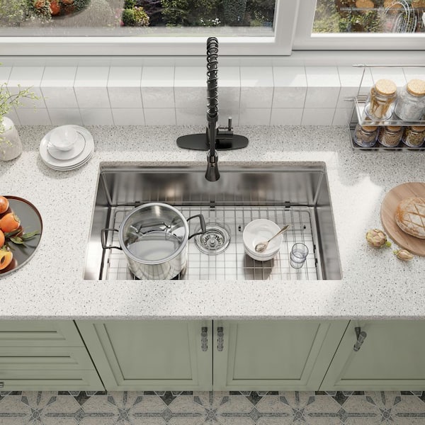 32 in. Undermount Single Bowl Nano Brushed Stainless Steel Workstation Kitchen Sink with Kitchen Faucet and Accessories