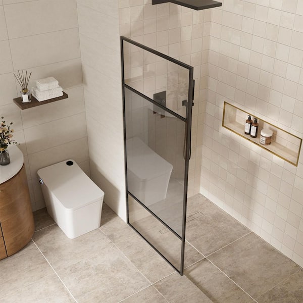 34 in. W x 74 in. H Framed Fixed Spliced Shower Screen Door in Matte Black with Tempered and LAMINATED Glass