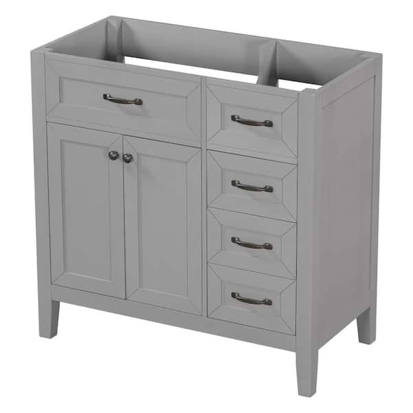 35.5 in. W x 17.7 in. D x 35 in. H Bath Vanity Cabinet without Top in Gray with 2 Doors and 3 Drawers