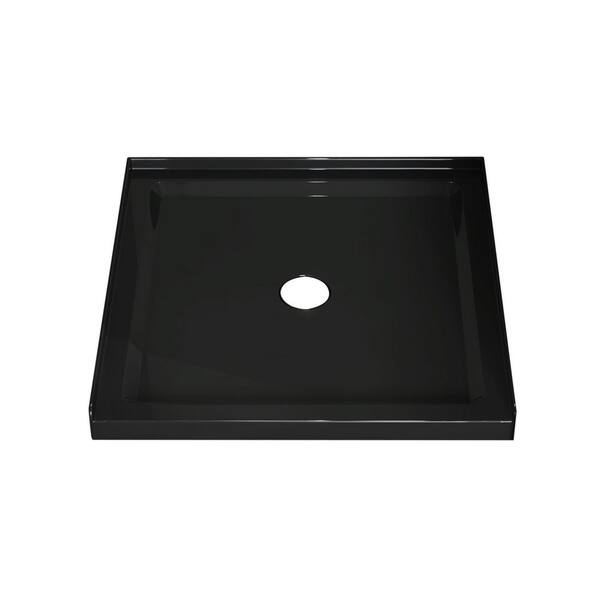 36 in. L x 36 in. W Single Threshold Alcove Shower Pan Base with Center Drain in Black