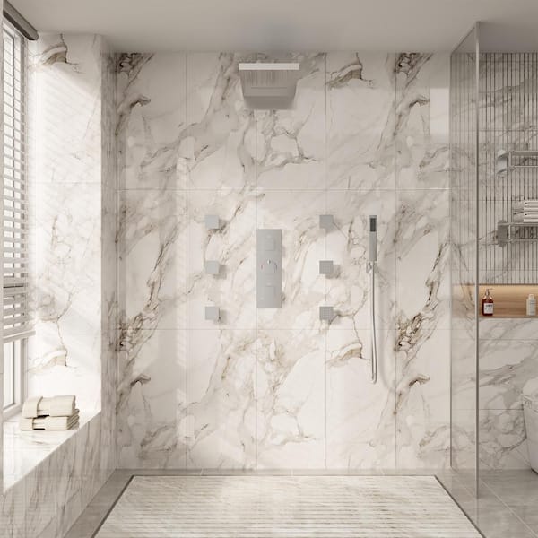 4-Spray 22 in. Wall Mount Rainfall & Waterfall Patterns Dual Fixed and Handheld Shower Head with 6-Jet in Brushed Nickel