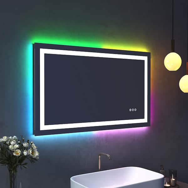 40 in. W x 24in. H Rectangular Frameless RGB Backlit LED Front Lit Anti-Fog Tempered Glass Wall Bathroom Vanity Mirror