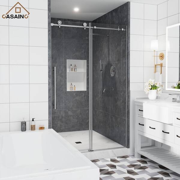 44-48 in. W x 76 in. H Sliding Frameless Shower Door in Chrome Finish with Clear Glass