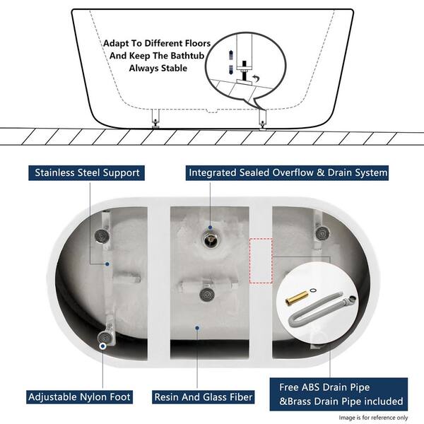 47.24 in. Acrylic Flatbottom Oval Shape Linear Design Overflow Bathtub in White
