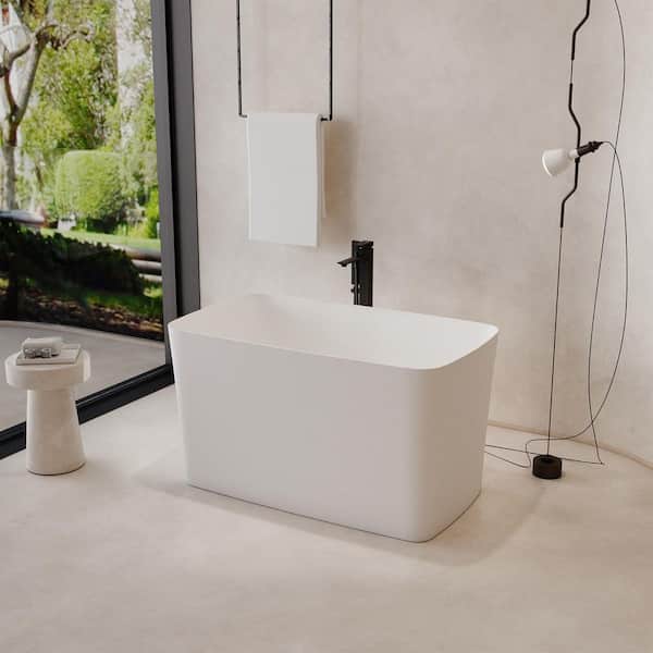 47 in. x 27.6 in. Freestanding Stone Resin Solid Surface Rectangular Soaking Bathtub in Matte White with Seat