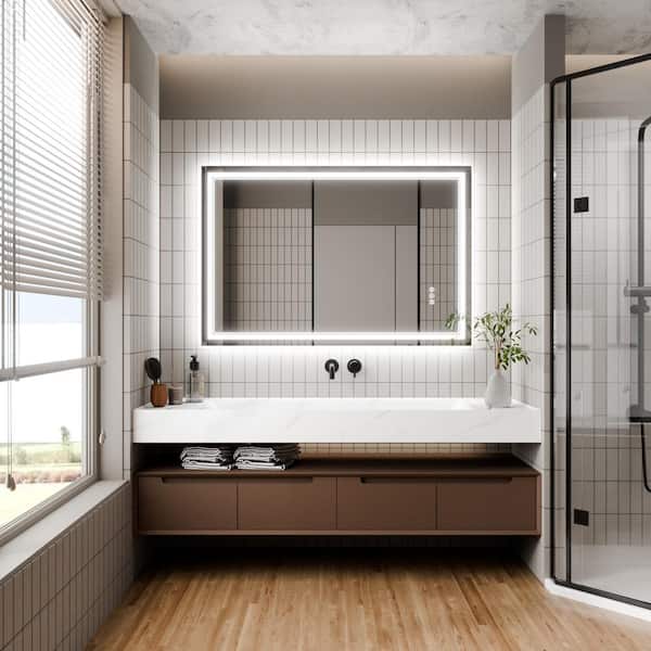 48 in. W x 32 in. H Rectangular Frameless LED Light Dimmable Anti-Fog Wall Bathroom Vanity Mirror