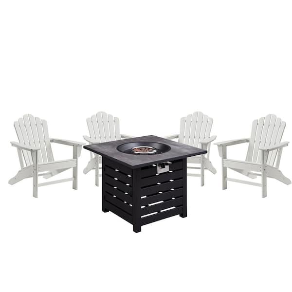 5-Piece Plastic Adirondack Outdoor Conversation Patio Fire Pit Set in White