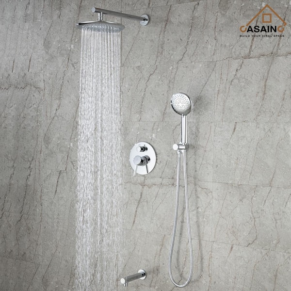 5-Spray Patterns 9.5 in. Tub Wall Mount Dual Shower Heads in Spot Resist Chrome