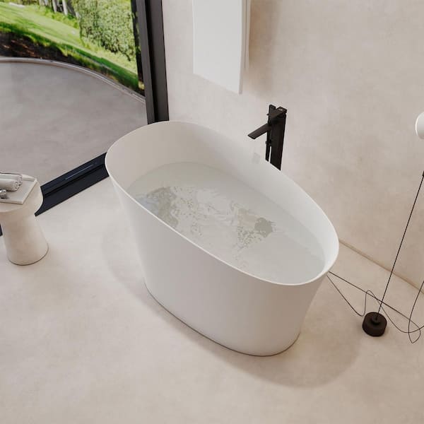 51 in. x 27.6 in. Freestanding Stone Resin Solid Surface Japanese Soaking Bathtub in Matte White with Seat