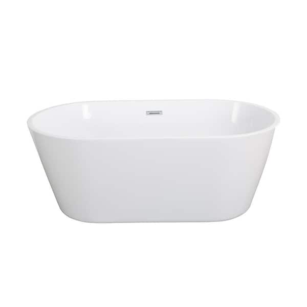 55.13 in. x 23.25 in. Acrylic Soaking Bathtub in White with Center Drain