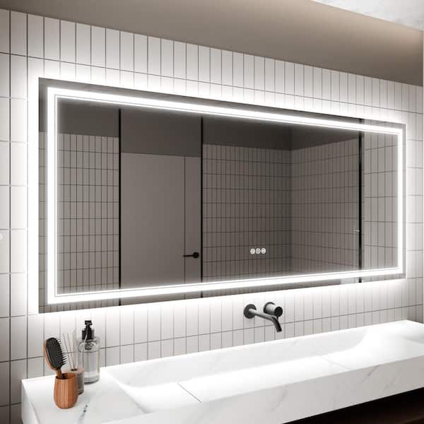 55 in. W x 30 in. H Large Rectangular Frameless LED Light Dimmable Anti-Fog Wall Bathroom Vanity Mirror