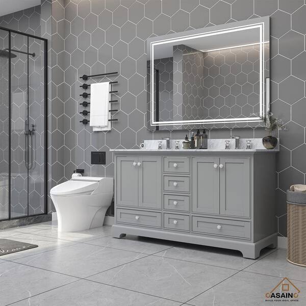 58.74 in. W x 20.67 in. D x 37.48 in. H Double Sink Bath Vanity in Gray with White Carrara Marble Top