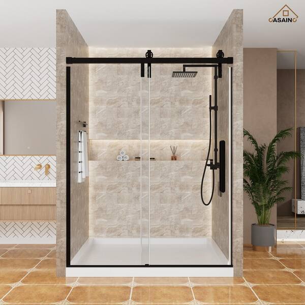 59.6-60.6 in. W x 76 in. H Framed Sliding Shower Door in Matte Black with Tempered Clear Glass Certified by SGCC