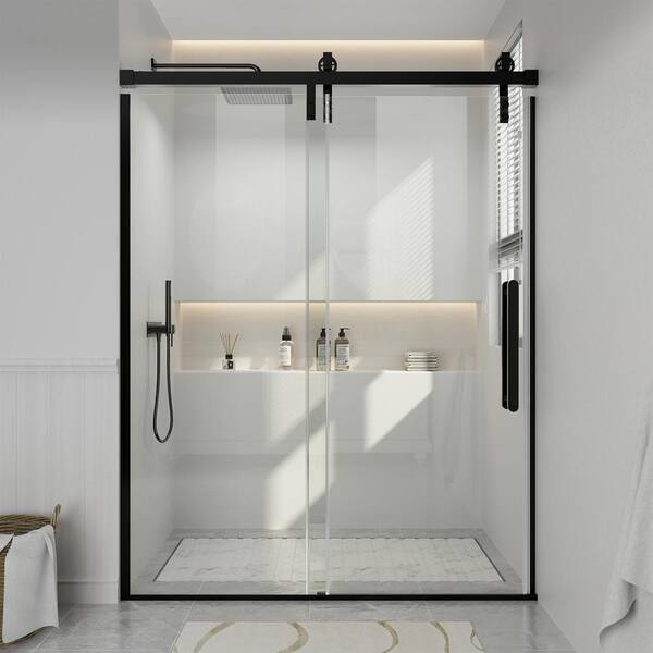 59.6-60.6 in. W x 76 in. H Frameless Glass Shower Door in Matte Black with Glass Certified by SGCC