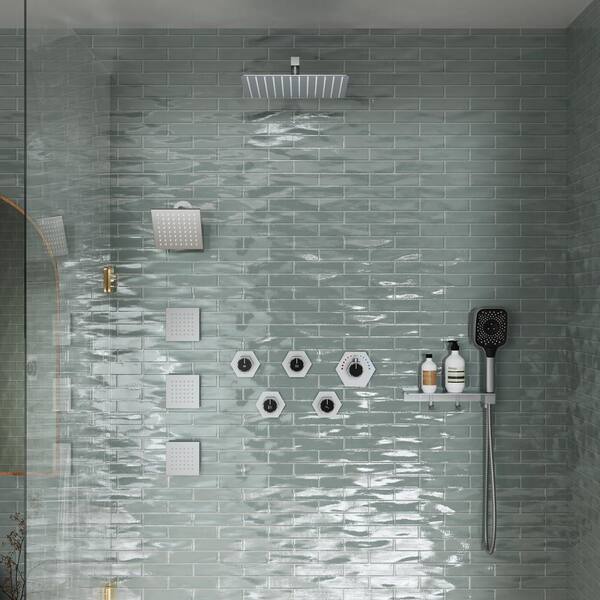 6-Spray 12 in. Wall Mount Dual Shower Heads and Handheld Shower Head with 2.5 GPM and Body Jets in Brushed Nickel