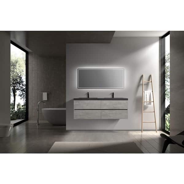 60 in. W Floating Double Sink Bath Vanity in Grey with Matt Black Quartz Sand Top