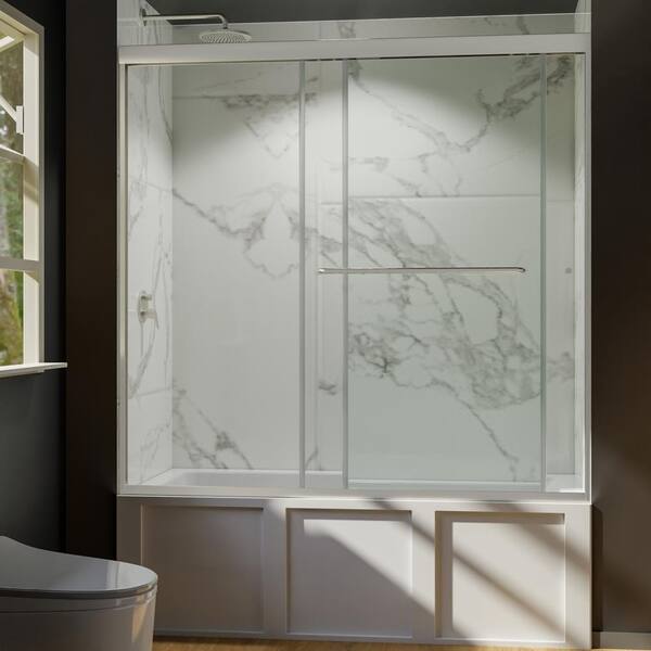 60 in. W x 58 in. H Framed Sliding Tub Door in Brushed Nickel with Tempered Clear Glass