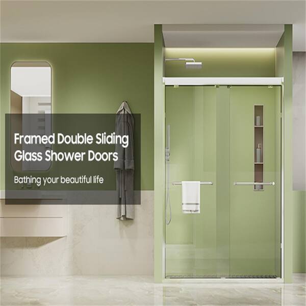 60 in. W x 76 in. H Double Sliding Framed Shower Door in Chrome Finish with 1/4 in. Clear Tempered Glass